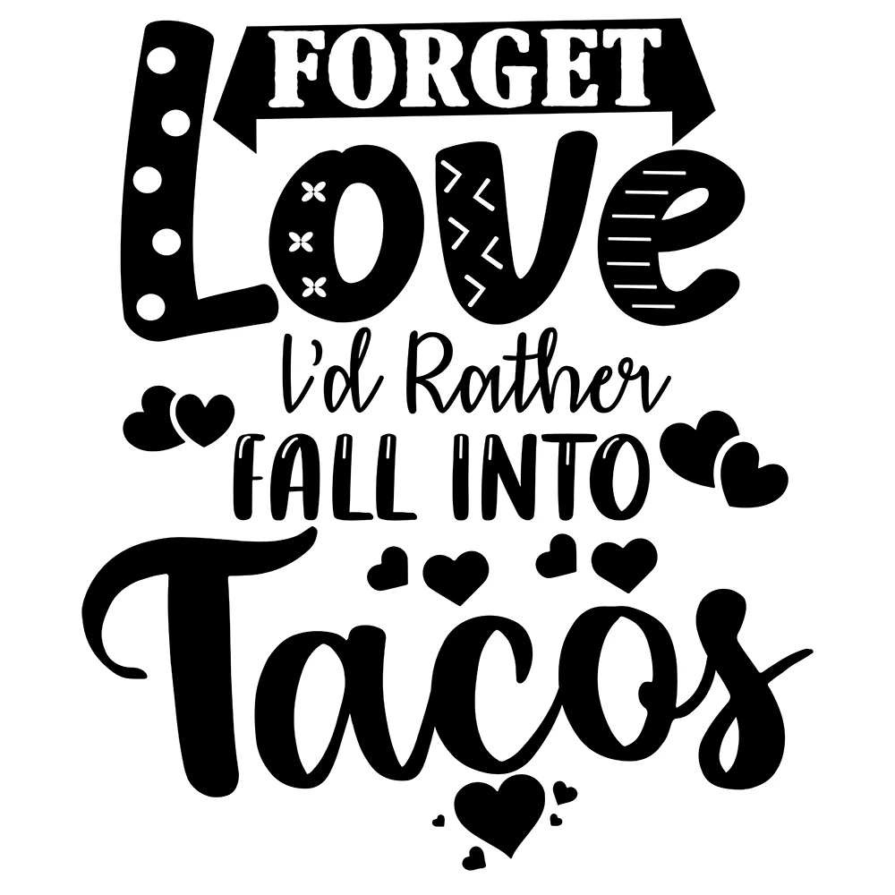 Add this awesome Forget Love I'd Rather Fall Into Tacos Vinyl Decal Sticker to your car, window, water bottle, laptop, cell phone, water bottle and more places! Buy for yourself or as a gift for any Taco fan in your life. Wonderful for birthdays, anniversaries, bridal / baby showers, Christmas & more!