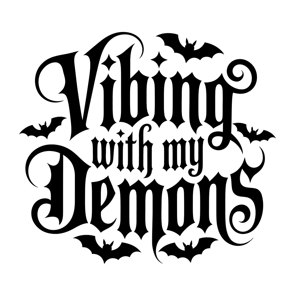 Add this awesome Vibing With My Demons Vinyl Decal Sticker to your car, window, water bottle, laptop, cell phone, water bottle and more places! Buy for yourself or as a gift for any Goth fan in your life. Wonderful for birthdays, anniversaries, bridal / baby showers, Christmas & more!
